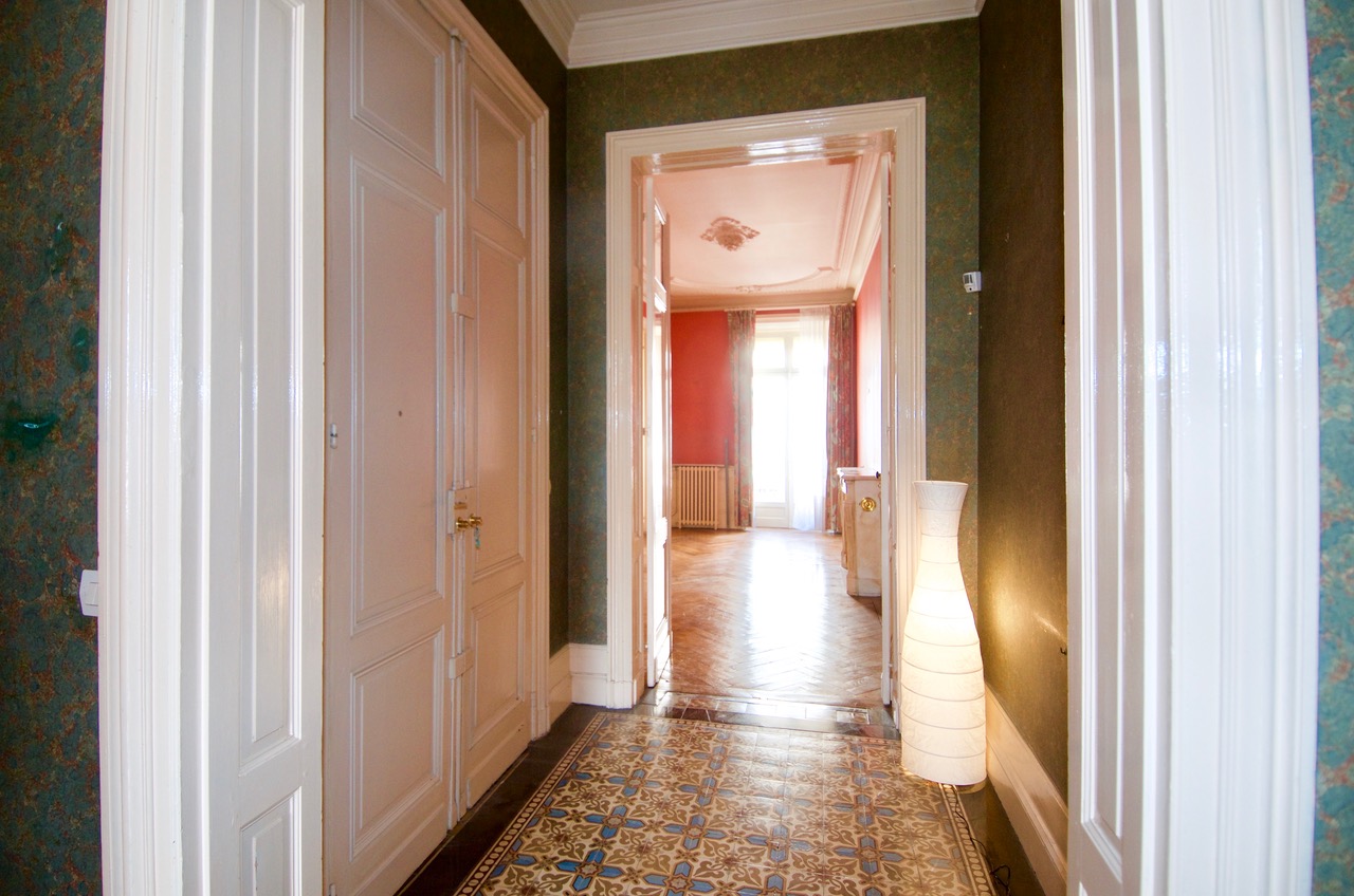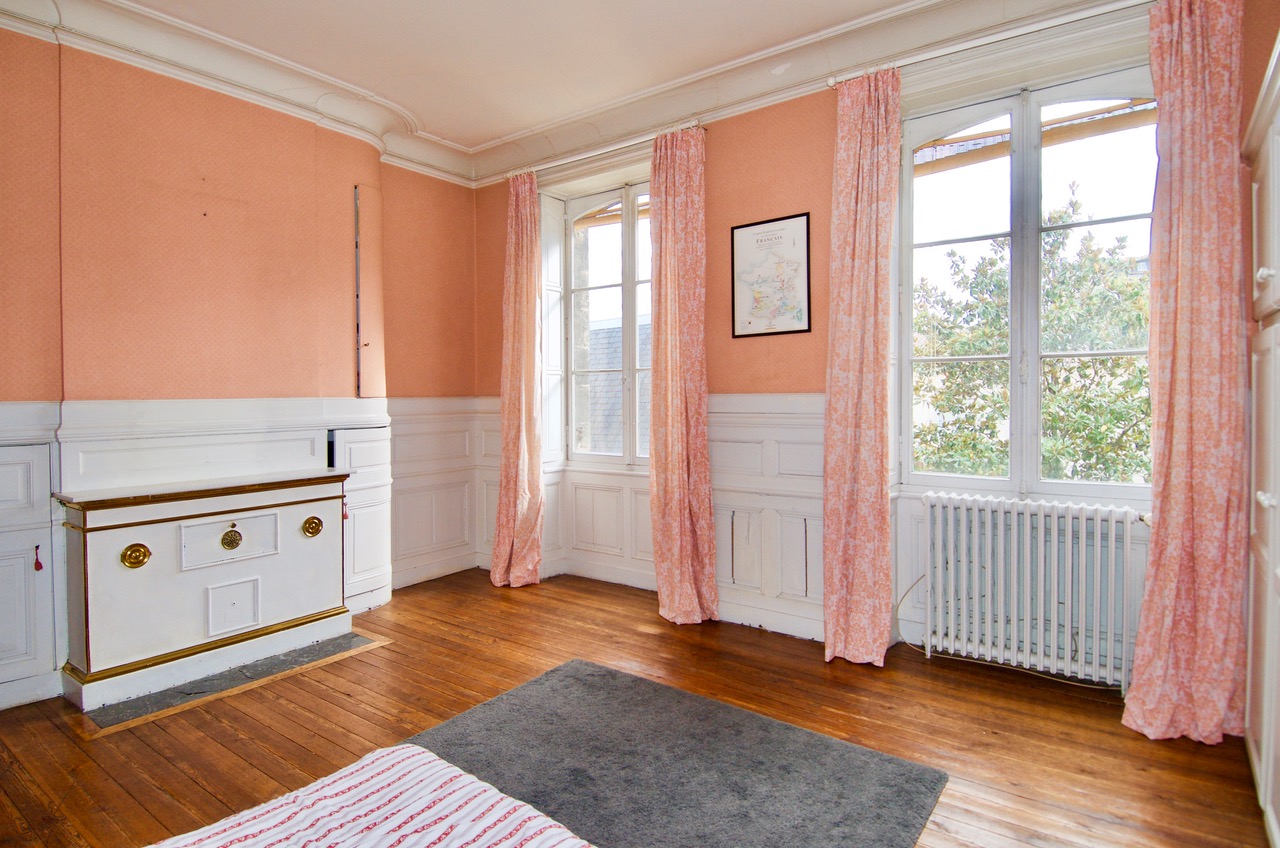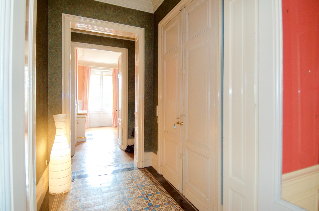 Au 2ème étage d'un bel immeuble en pierre, appartement de 125m2 avec magnifiques plafonds moulurés.